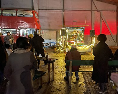 Das hat er ganz gut hingekriegt: TJ - Der Mann mit der Melone. Ausgerechnet die Melone hatte er zwar vergessen, aber das Konzert war umso besser. Das Konzert war gut besucht und die Begeisterung groß für den Bluessound unterm Hochdach auf dem Frick-Gelände.